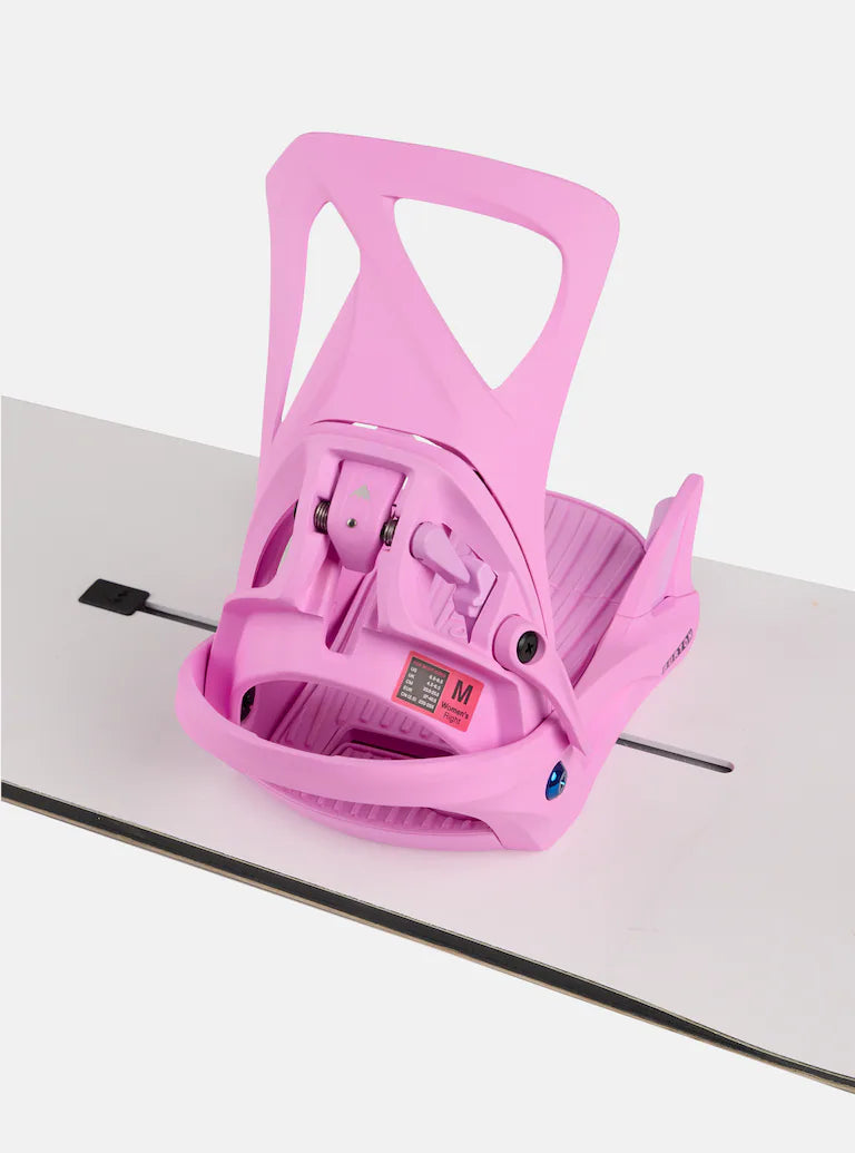 Passez à Step On®. Les fixations de snowboard Burton Step On® Re:Flex pour femmes associent une connexion intuitive entre la chaussure et la fixation avec des performances all-mountain. Trois points de connexion, deux à la pointe et un au talon, offrent une simplicité, une sécurité et un contrôle de la planche inégalés.