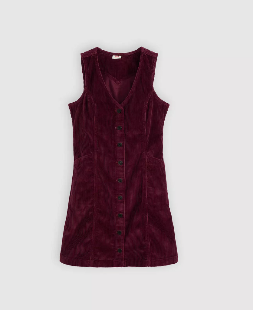 La Vianna Vest Dress allie simplicité et structure avec une touche rétro. Conçue en velours côtelé 100 % coton, elle offre une coupe flatteuse, un col en V et une boutonnière classique. Facile à enfiler, elle est parfaite seule ou superposée pour un look d'automne chic et sans effort.