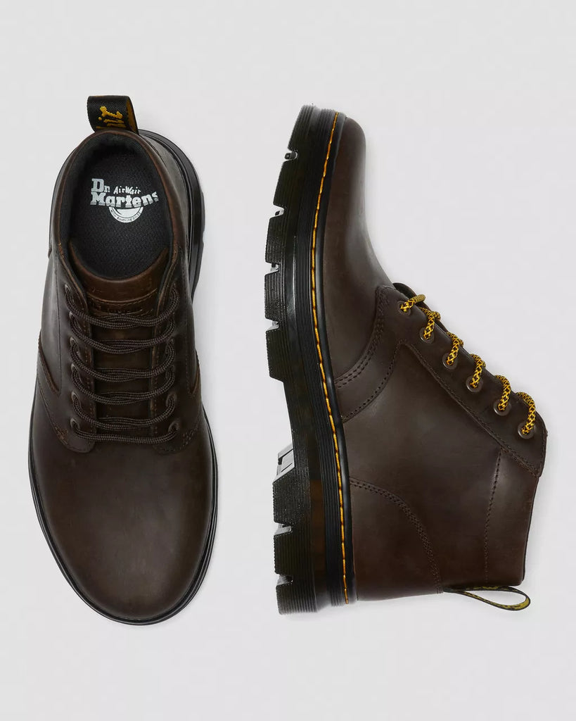 Entre look utilitaire et vibe classique, les bottes Bonny Wyoming offrent une silhouette robuste et stylée. Confectionnées dans un cuir Wyoming riche et texturé à surface huilée, elles reprennent tous les codes iconiques de Dr. Martens : surpiqûres jaunes, semelle résistante et boucle au talon. Un essentiel polyvalent et durable pour affronter la ville avec attitude.