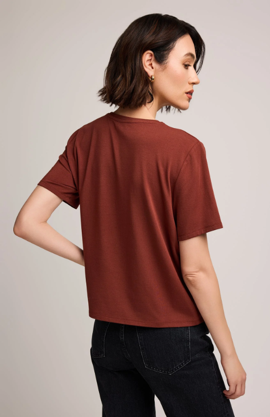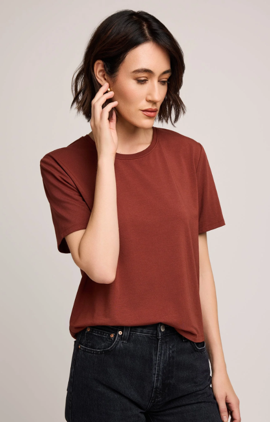 Le top Christine est réalisé dans un tissu doux en coton modal, agréable au toucher et idéal pour un usage quotidien. Sa coupe décontractée et son col rond en font une pièce polyvalente et facile à porter, aussi bien seule que superposée.