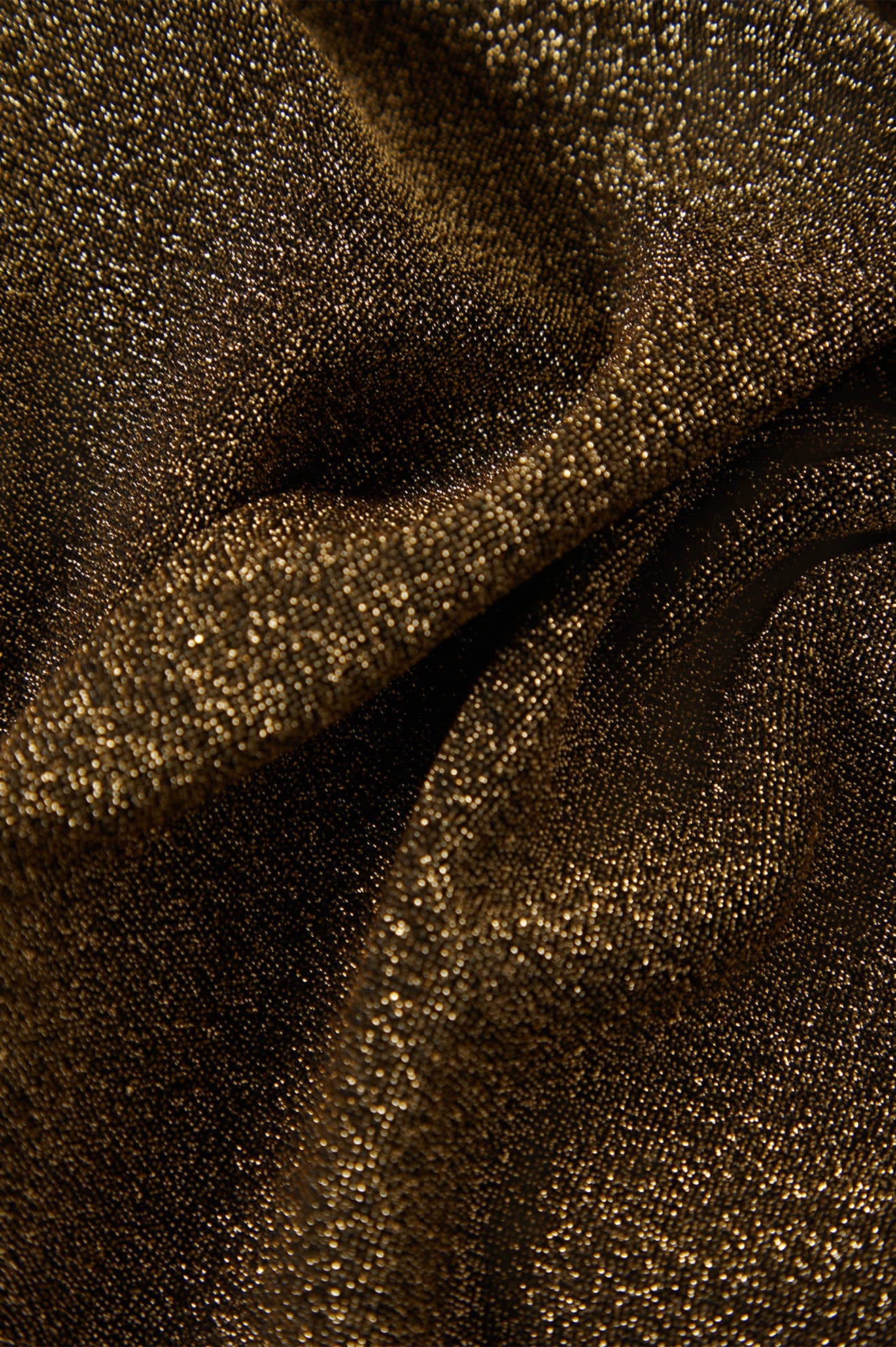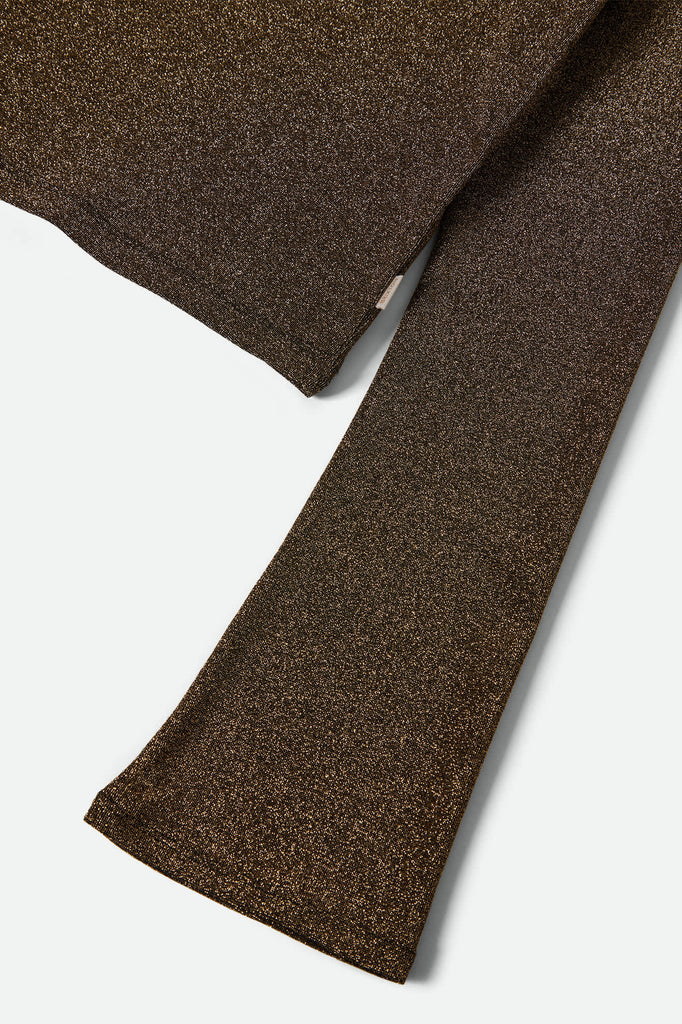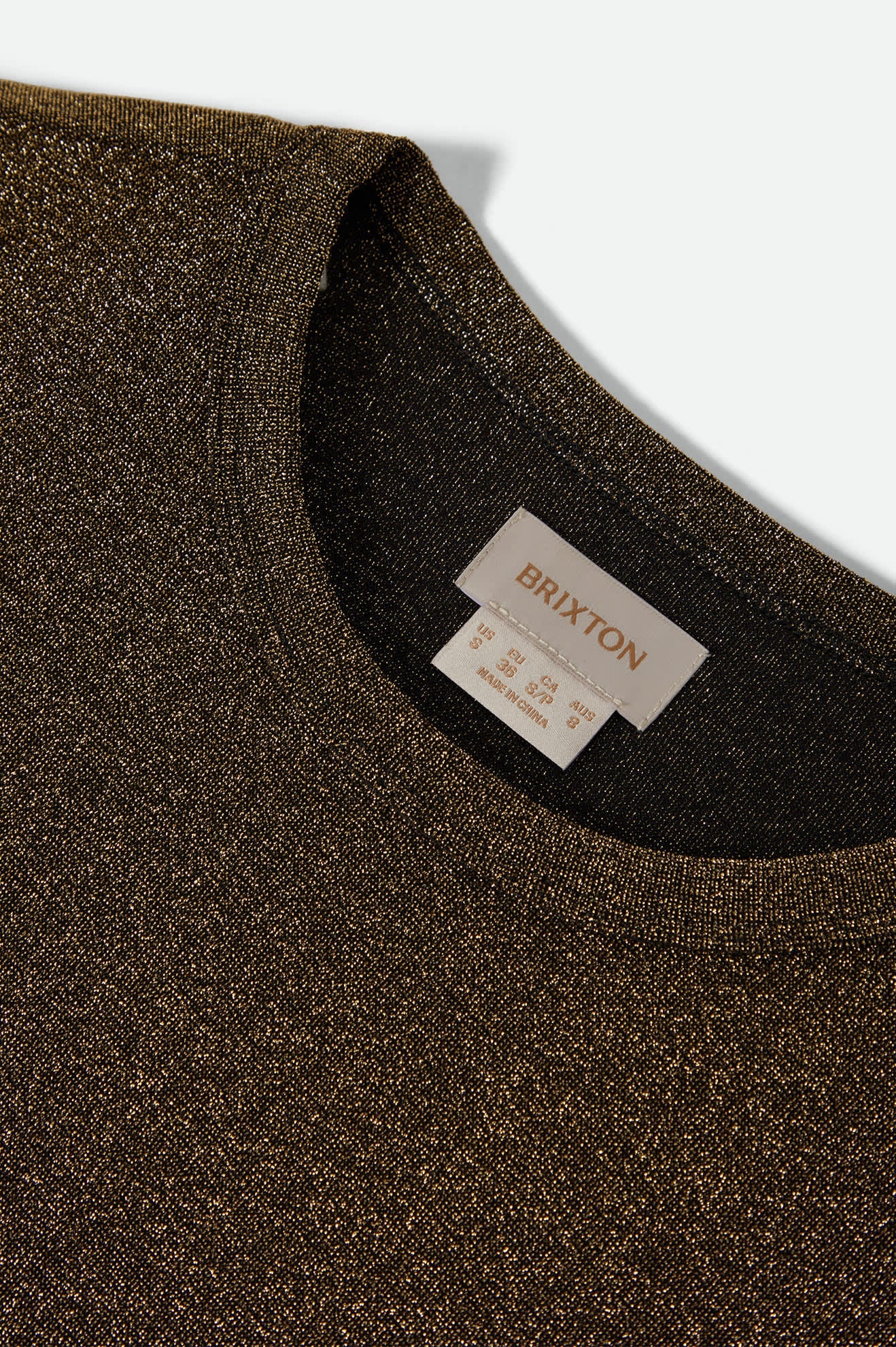 Ce haut en maille allie style vintage et élégance moderne. Ses manches légèrement évasées et son col relié apportent une touche soignée, tandis que sa matière douce suit les mouvements du corps. Décliné en version dorée ou noire, il s’adapte à toutes les humeurs et toutes les occasions.