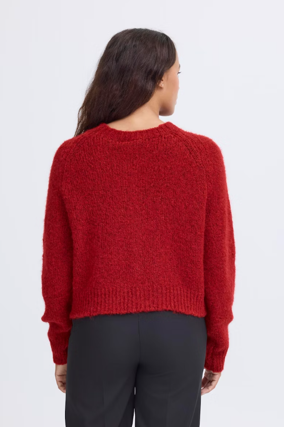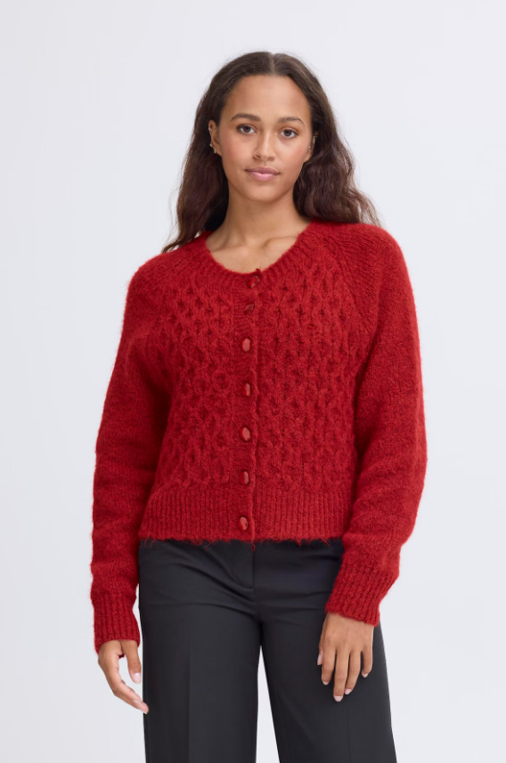 Ce cardigan court signé ICHI mise sur une coupe relaxe et une texture tricotée ultra douce. Avec son col rond classique et sa fermeture à boutons, il est parfait pour le layering. Un essentiel versatile qui apporte une touche cozy à ton quotidien, toujours dans le flow S3.