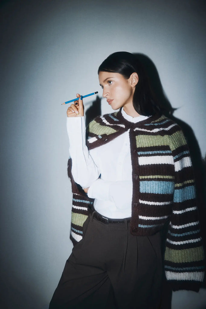 Le cardigan It Girl incarne la douceur des moments simples. Avec sa coupe décontractée et son tricot léger, il évoque le confort d’une pièce qu’on enfile pour une balade automnale. Minimaliste et intemporel, il ajoute une touche chaleureuse et vintage à toutes vos tenues de saison.