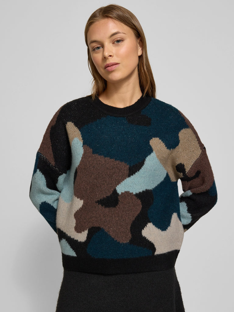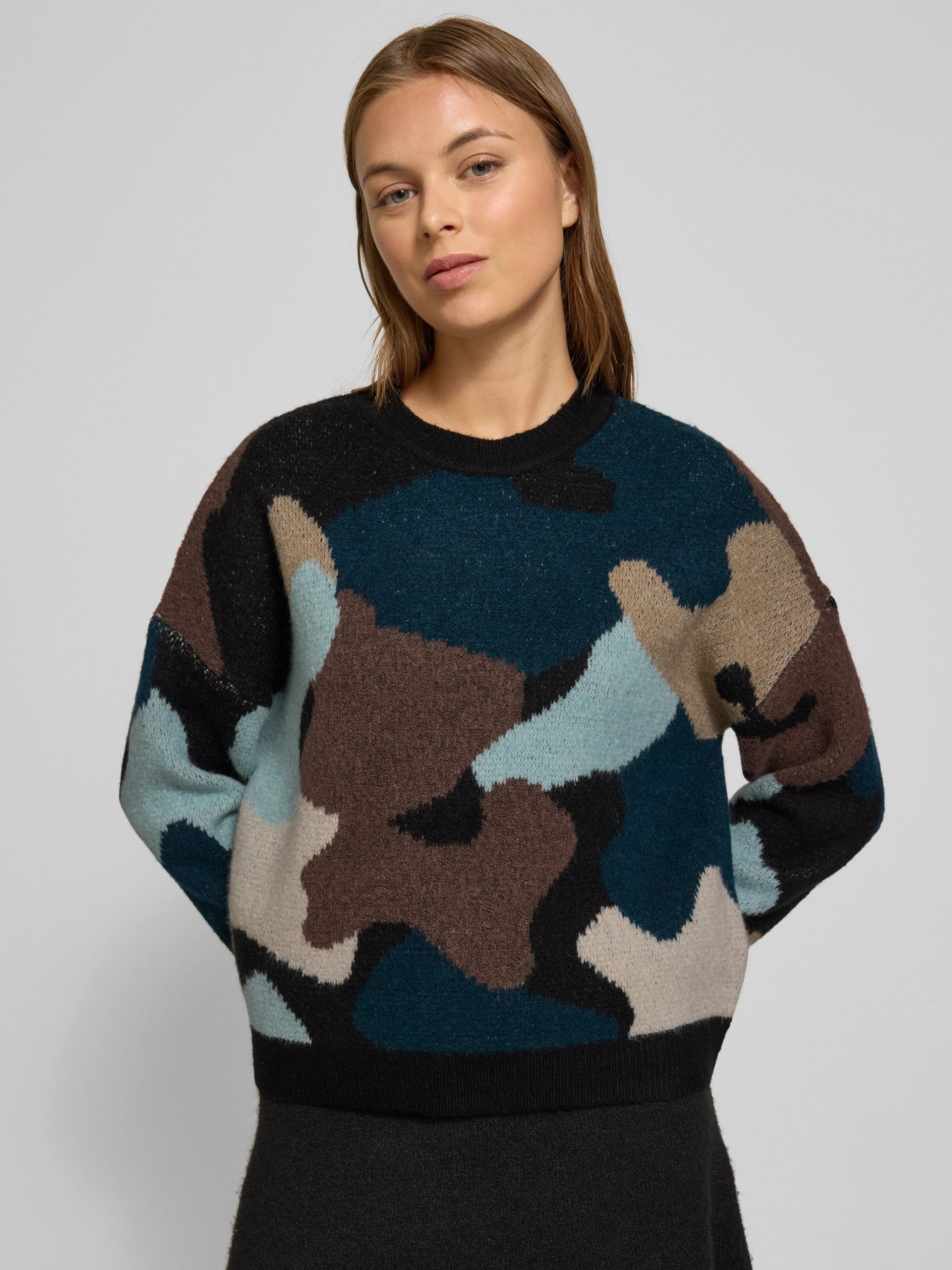 Ce chandail à col rond mise sur un motif abstrait unique et une coupe relax pour un look moderne sans effort. Les épaules légèrement tombantes et les finitions côtelées ajoutent une touche décontractée à cette pièce confortable, parfaite pour l’automne et l’hiver.