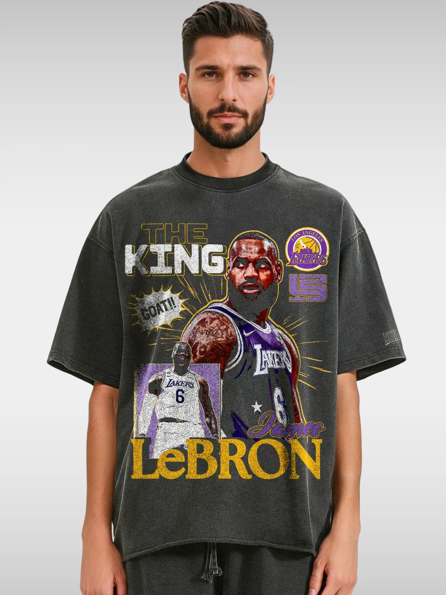Affirmez votre admiration pour LeBron James avec ce t-shirt audacieux à l’effigie du King en mode Lakers. Une pièce forte qui incarne puissance, héritage et domination – parfaite pour ceux qui portent la couronne au quotidien.