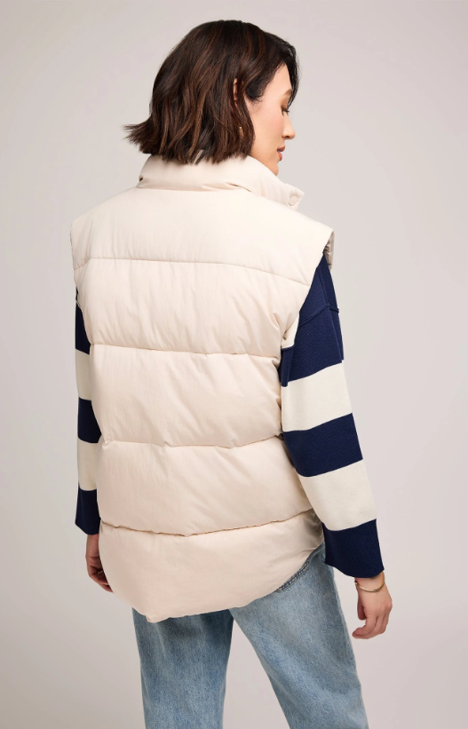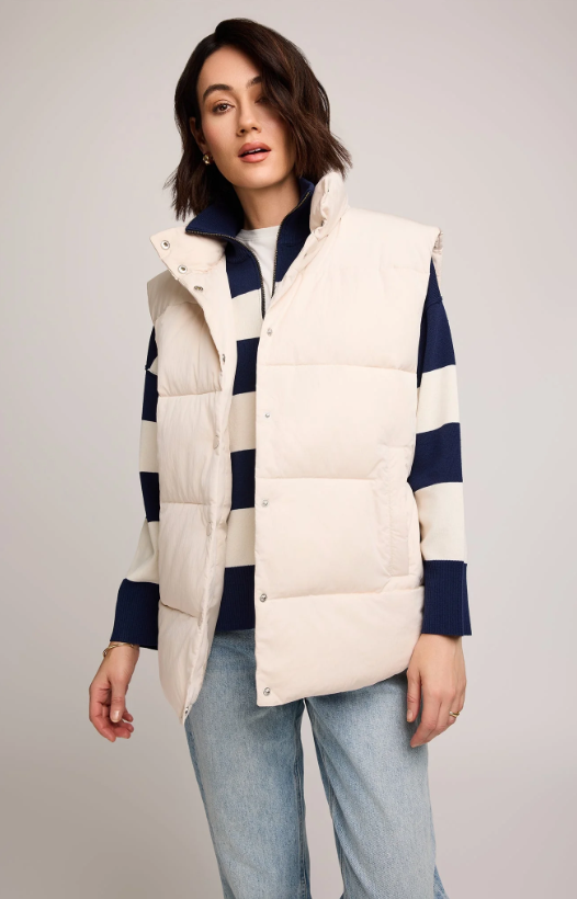 La veste Nora est conçue dans un tissu nylon léger avec juste ce qu’il faut de rembourrage pour rester bien au chaud sans alourdir la silhouette. Sa coupe oversized, sa fermeture à boutons-pression et ses poches discrètes en font une pièce stylée et pratique, idéale pour superposer en automne ou au printemps.