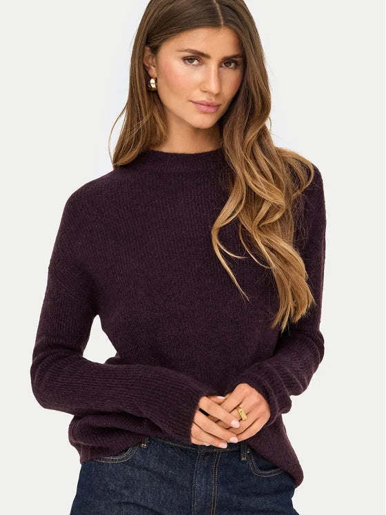 Ajoutez une touche de chaleur et de style à votre garde-robe avec ce chandail ONLY en tricot violet. Confectionné dans un mélange doux et extensible, il offre un confort optimal pour la saison froide, tout en s'adaptant facilement à vos tenues de tous les jours.