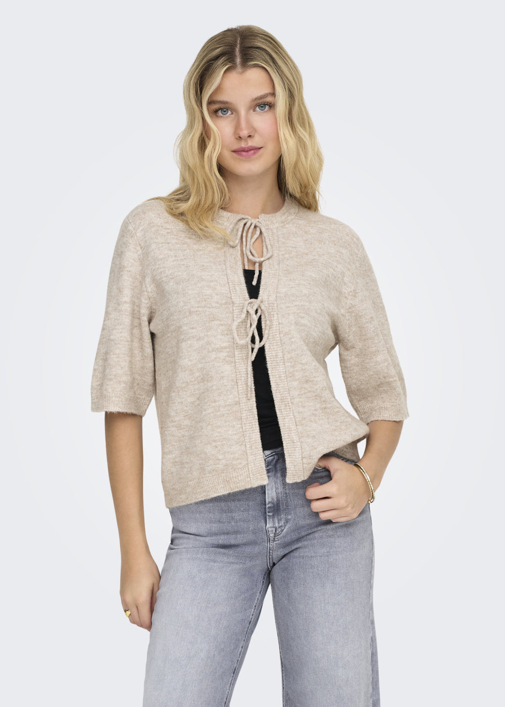 Ajoutez une touche féminine à vos tenues du quotidien. Ce cardigan à col rond et manches ¾ se distingue par sa fermeture à nouer délicate et sa coupe décontractée. Parfait pour superposer sur une robe ou un haut basique, il allie confort et style avec sa maille douce et extensible.