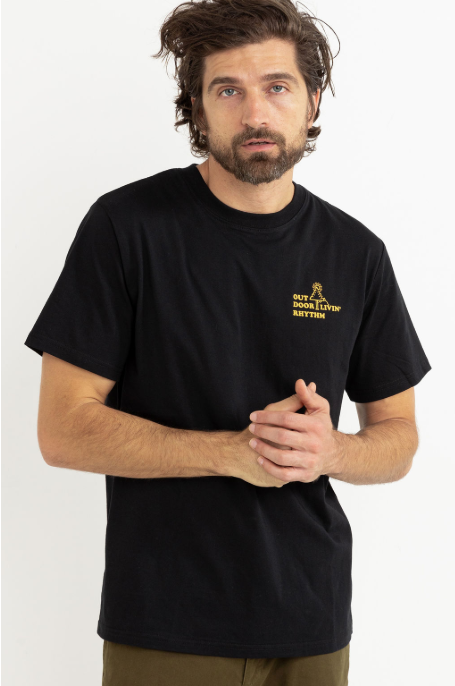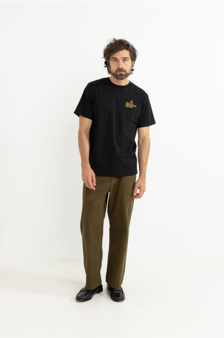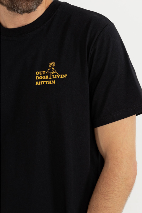 Ce t-shirt noir à manches courtes allie simplicité et caractère avec ses impressions jaunes placées à l’avant au cœur et dans le dos. Confectionné en coton 100 %, il est parfait pour un style décontracté au quotidien.