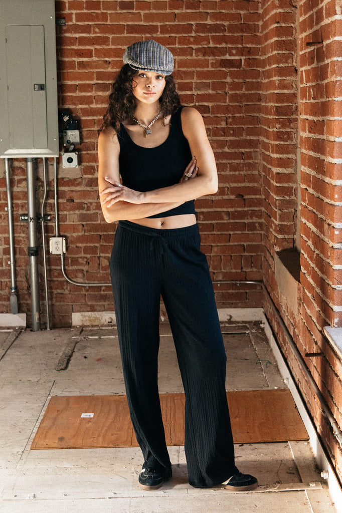 Le parfait allié pour chiller avec style. Conçus en douce maille pointelle de coton, ces pantalons t’offrent confort et aisance. Taille élastique réglable, poches côte à côte pratiques, et silhouette relax — tout ce qu’il faut pour tes journées détente ou tes escapades urbaines.