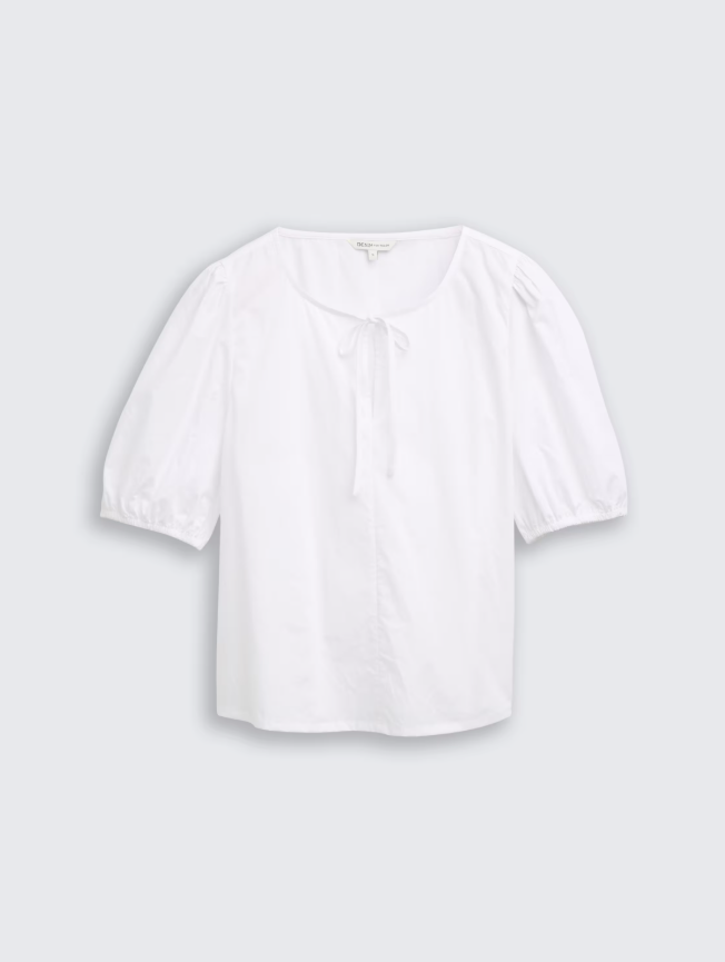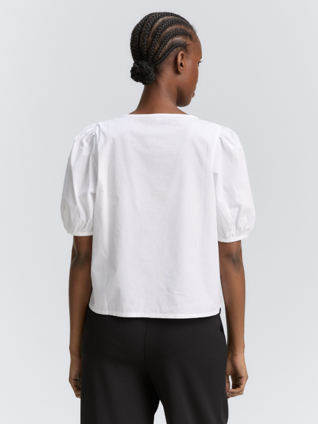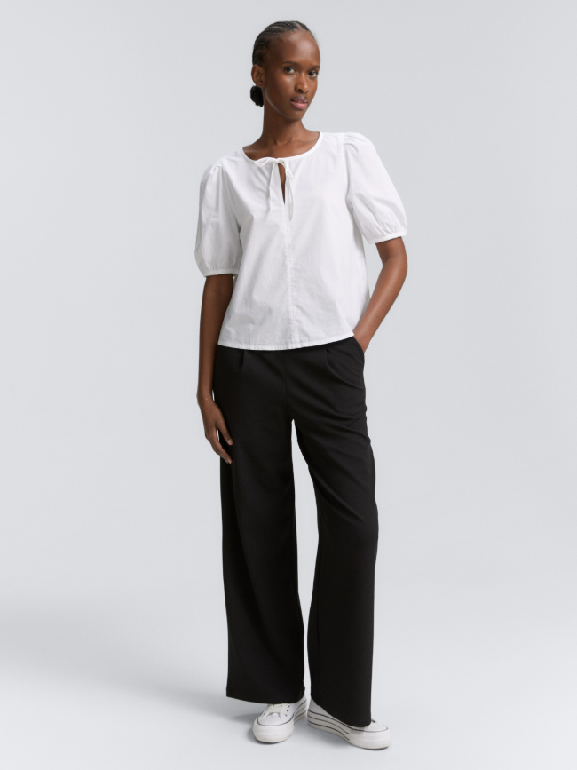 Douce et féminine, cette blouse en coton popeline se distingue par son détail nœud à l’encolure et ses manches ballon élégantes. Sa coupe droite et son tissu léger en font un choix parfait pour les journées ensoleillées ou les looks de bureau chic.