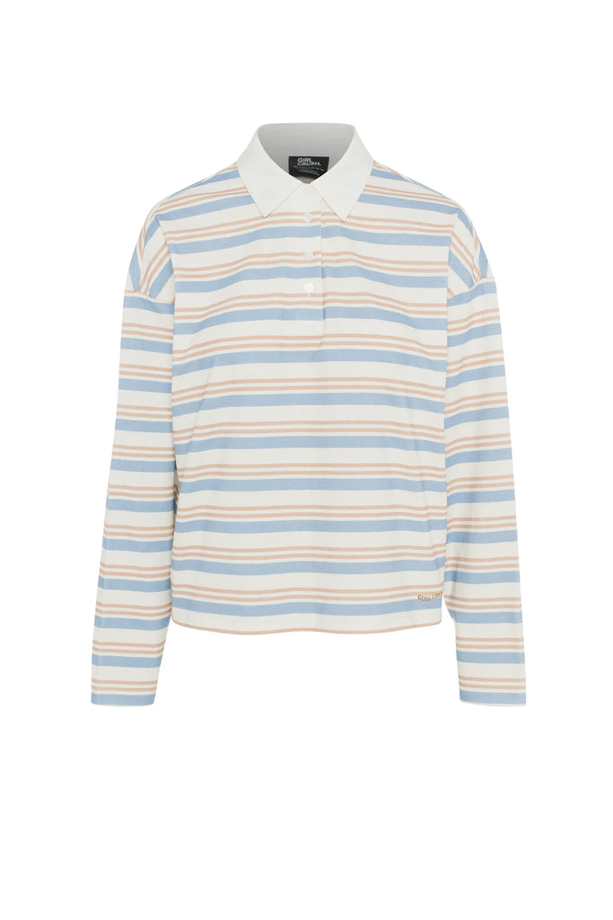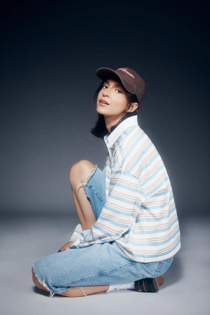 La Preppy Polo Shirt capture l’ambiance nostalgique des après-midis entre amis, entre cafés étudiants et terrains improvisés. Ses rayures bleu pâle, crème et chocolat lui donnent un charme rétro assumé. Avec sa coupe ample et son col contrastant, elle apporte une touche old-school élégante à vos tenues du quotidien.