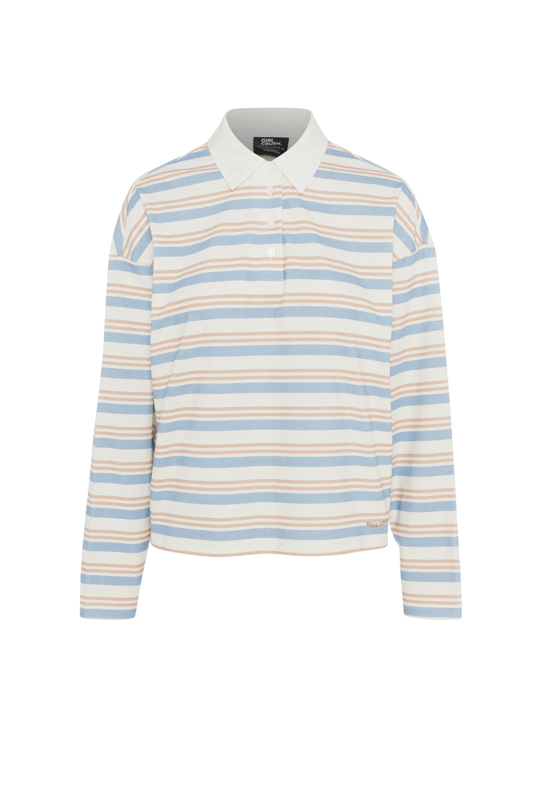 Modèle : Rayures bleu pâle, crème et marron, col polo blanc contrastant
