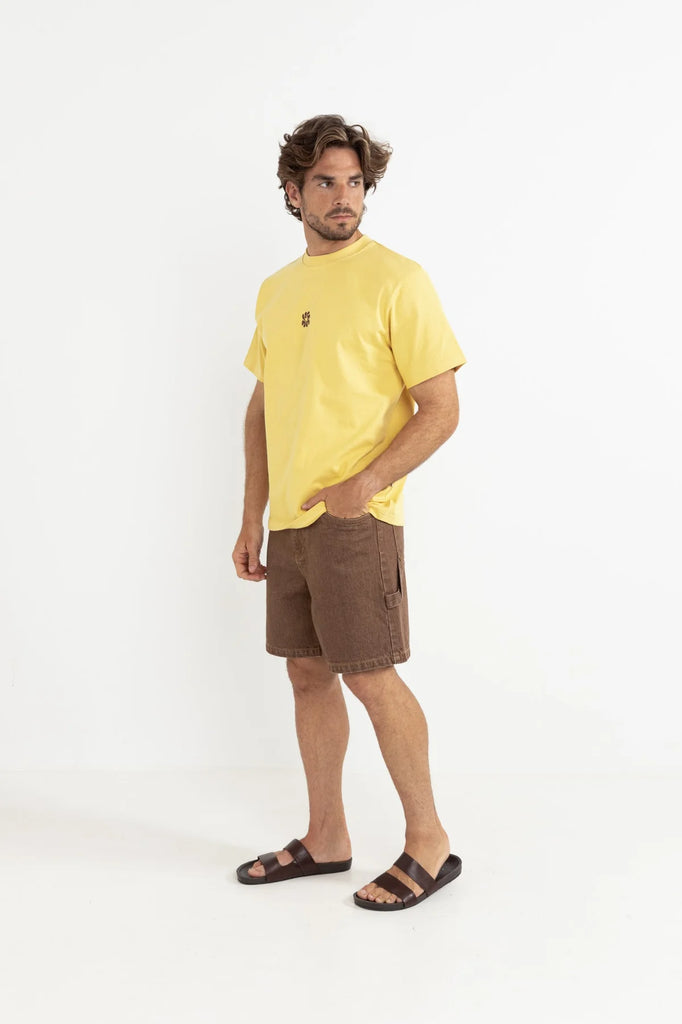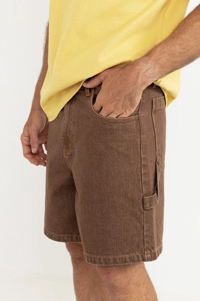 Le Sundowner Denim Short en coloris Tobacco allie robustesse et style utilitaire. Confectionné en denim épais 100 % coton, il se distingue par ses surpiqûres contrastantes, ses poches techniques, sa boucle marteau et ses broderies discrètes. Un short fonctionnel et tendance, parfait pour un look affirmé cet été.
