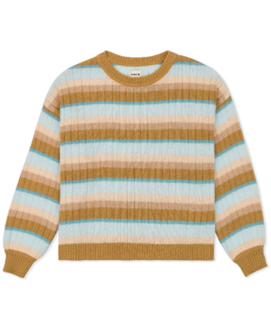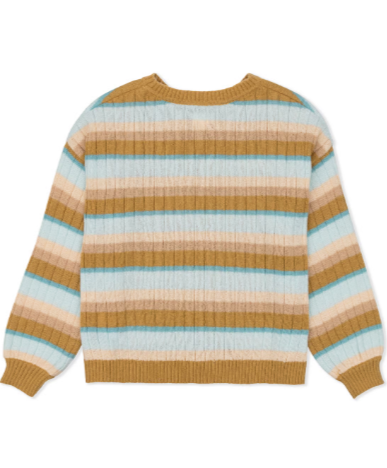 Détail : rayures teintes dans la masse (yarn dye), col, poignets et ourlet côtelés