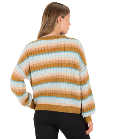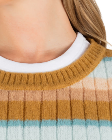 Le pull Untamed Spirit combine l’énergie des rayures rétro à un esprit bord de mer. Confortable et extensible grâce à sa maille côtelée en polyester, il apporte une touche de couleur idéale pour les matins frais ou les couchers de soleil en bord d’océan.