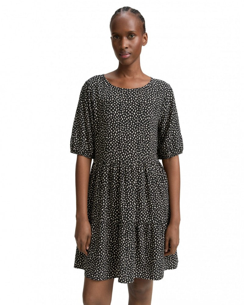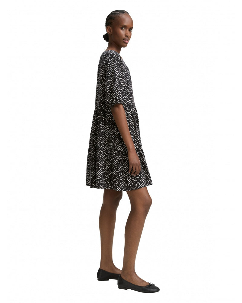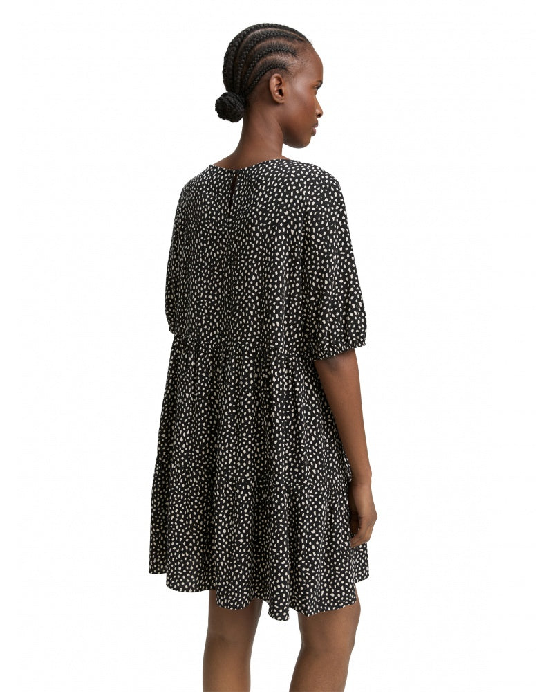Fluide, féminine et facile à porter, cette robe en voile de viscose est parfaite pour les journées ensoleillées ou les soirées douces. Son col rond, ses manches à poignets élastiques et sa fermeture à bouton au dos ajoutent une touche délicate à cette pièce minimaliste.