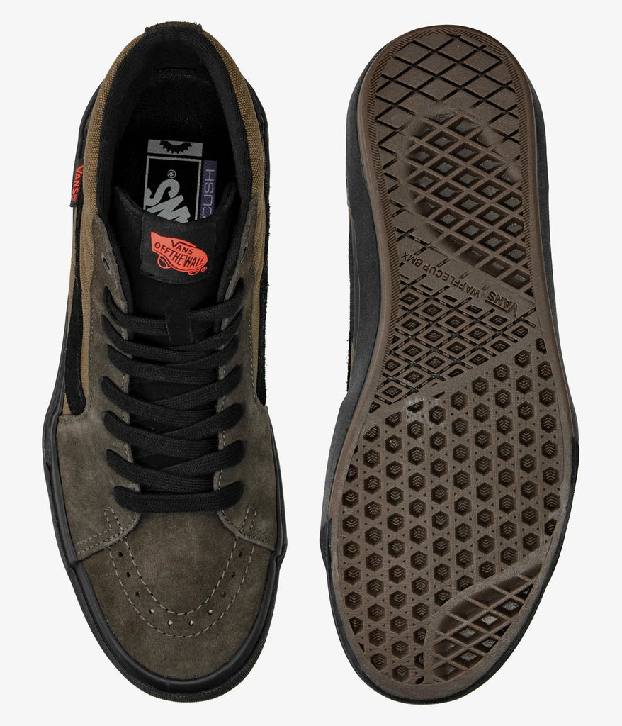 Avec sa silhouette montante emblématique de Vans, elle offre protection et flexibilité, idéale pour le tir, les trajets quotidiens à vélo ou toute activité exigeant adhérence et contrôle. La semelle extérieure en caoutchouc VDFPR (Van Doren Factory Pedal Recipe) garantit une stabilité parfaite sur les pédales, le béton ou les terrains accidentés, tandis que la tige en daim et toile résiste à l'usure avec le style Vans classique.