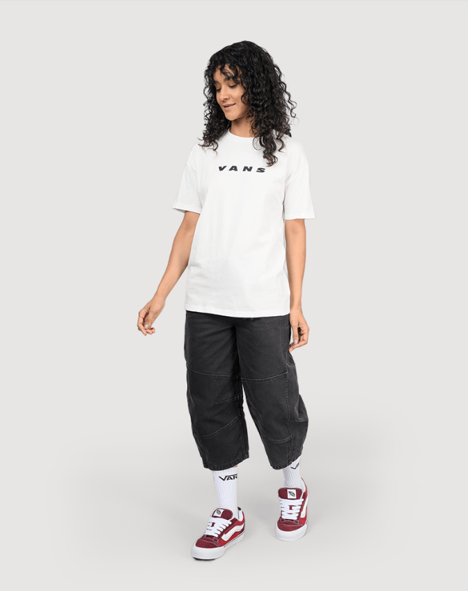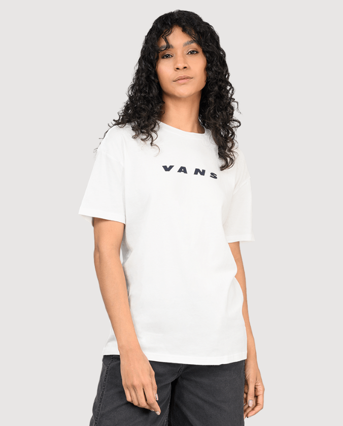 Avec son logo central emblématique, le t-shirt Vans Retro revisite un classique intemporel. Conçu en coton 100 %, il offre un confort optimal au quotidien. Sa coupe standard et sa teinte blanche en font une pièce facile à associer, parfaite pour un look casual, minimaliste et efficace.